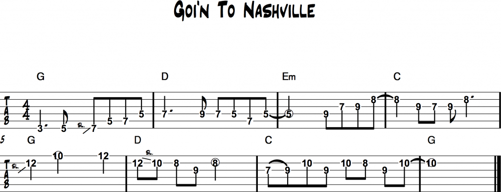 Here are two eight-measure solos your students can learn using the scale over chords in the key of G.  Use the diagram above of the major pentatonic scale with the root on the sixth string. Learning these solos will help provide a springboard for your students to build their own solos.  The diagram and solo Goin’ To Nashville are taken from the Consonus Course and Book, Guitar Fundamentals, Intermediate Guitar Level 2.