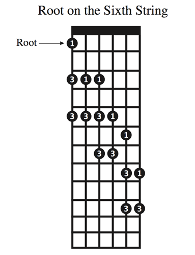 This pattern is moveable. The letter name of the root is the letter name of the scale. For example, if this pattern was played with the root positioned on the sixth string, in the third fret, it would be the G major pentatonic.